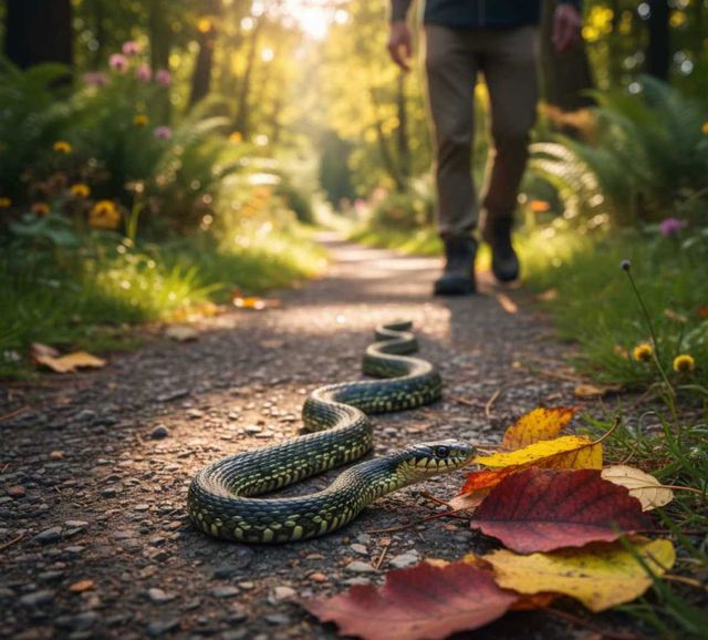 산책로에서 발견된 뱀. 기사 내용을 바탕으로 AI가 생성한 자료사진.