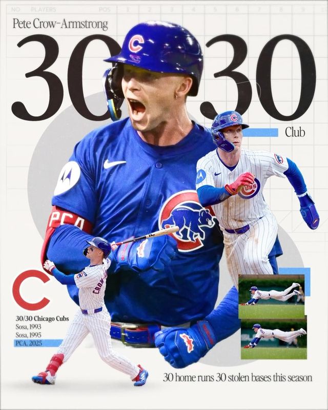 미국 메이저리그(MLB) 시카고 컵스 외야수 피트 크로우-암스트롱(23)이 구단 역사상 두 번째로 30(홈런)-30(도루) 클럽 가입에 성공해 현지의 주목을 받았다.