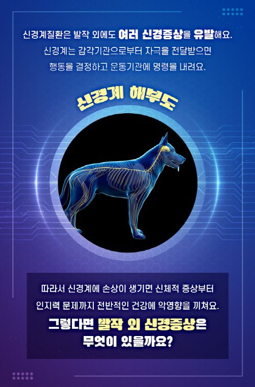 신경계질환은 발작 외에도 여러 신경증상을 유발해요.