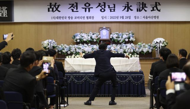 28일 오전 6시 서울 송파구 서울아산병원 장례식장에서는 고 전유성의 영결식이 열렸다. 이날 자리에는 유족과 고인의 수많은 후배들이 함께해 고인과 마지막 인사를 나눴다.