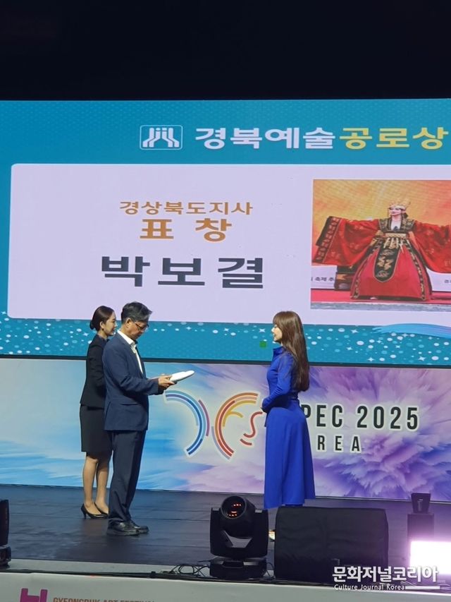 문화저널코리아 오형석 기자 | 연극과 음악을 통해 30여 년간 무대에서 관객과 호흡해온 박보결 (사)한국연극협회 경주지부장(57)이 제47회 경북예술제에서 '경북예술공로상'을 수상했다. 경북예총이 주관하는 이 상은 경북도지사상에 준하는 권위 있는 상으로, 지역 문화예술 발전에 크게 기여한 인물에게 수여된다.