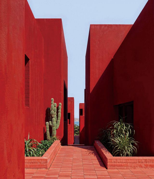 요새형 건축 구조로 완성한 레드 솔 리조트. 공용 공간과 숙박 공간이 미로처럼 얽혀있다.