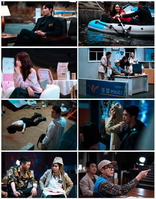 지난 1-4회에서는 반전의 연속 폐병원 살인사건이 추리 본능을 자극했고, 비밀스러운 가족사에 얽힌 장례식장 살인사건은 상상을 초월한 막장 전개로 도파민을 수직 상승시켰다. 그런 가운데 오늘(30일) 공개되는 ‘크라임씬 제로’ 5-8회에서는 한강교 미스터리와 유흥가 살인사건이 그려진다.