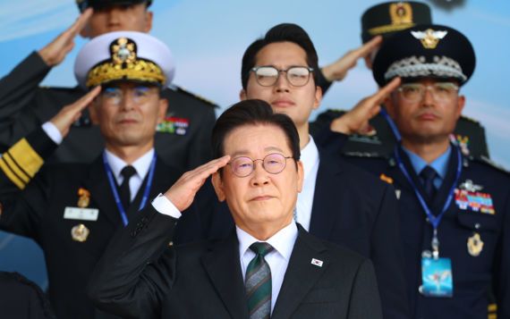 한편 이 대통령은 12·3 비상계엄 사태를 겨냥해 "일부 군 지휘관들은 군 본연의 임무를 망각한 채 최고 권력자의 편에 서서 국민을 향해 총부리를 겨눴다"며 "우리 군의 명예와 신뢰도 한없이 떨어졌다"고 비판했다.