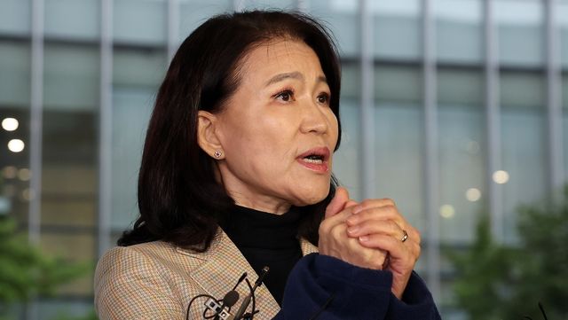 지난 3일 이진숙 전 방송통신위원장이 2일 오후 서울 대치동 자택에서 경찰에게 체포된 뒤 영등포경찰서에서 입장을 밝히고 있다. / 뉴스1