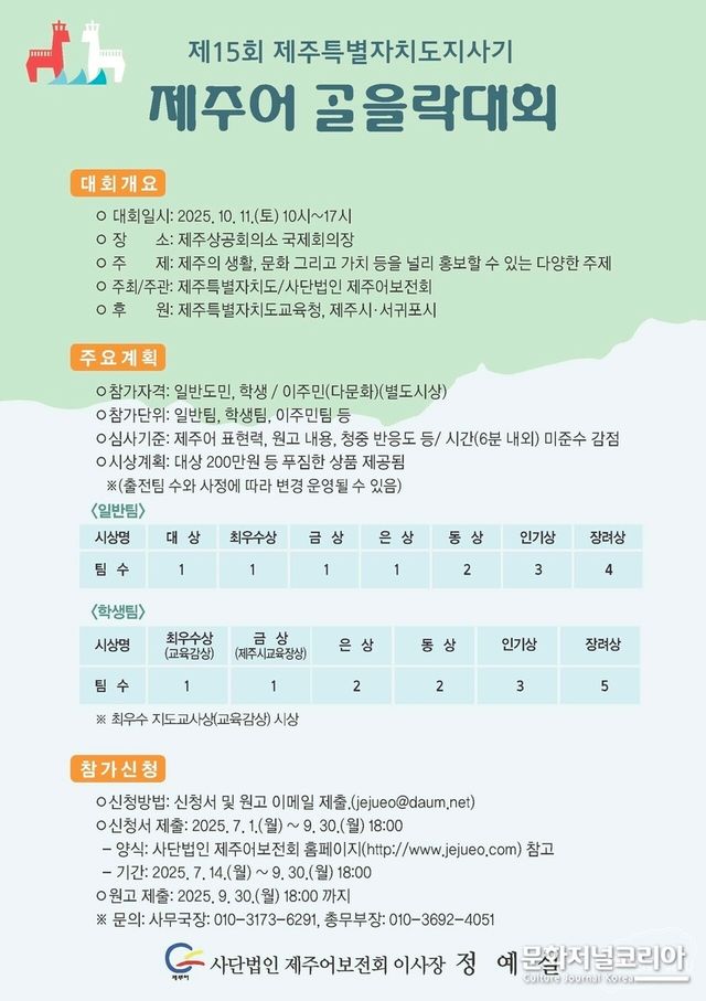 한편 이번 대회를 통해 제주어가 다시금 도민 생활 속에서 자연스럽게 쓰이고, 새로운 세대가 제주어를 '나의 언어'로 받아들일 수 있는 계기가 마련될 것으로 기대된다.