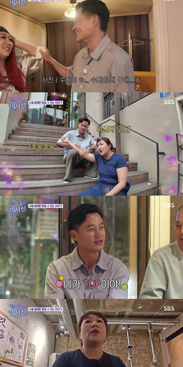 이날 방송에서는 본격적인 매니저 활동에 앞서 이서진과 김광규는 이수지의 실제 매니저로부터 지침서를 전달받았다. 음식 조달을 최우선으로 하되, 핑거푸드 챙기기와 손풍기 준비, 나아가 백태와 겨땀까지 체크해야 한다는 특이한 요청들이 담겨 있었다. 이를 확인한 이서진은 이수지에게 다짜고짜 “백태가 자주 끼는 편이에요?”라고 물어 이수지를 당황하게 했다. 이에 이수지는 “광고 찍을 때만 사탕을 먹는다”며 “제가 체크할게요. 백태 얘기하면 다들 제 백태만 얘기할 거 아니에요”라며 받아쳐 웃음을 자아냈다.