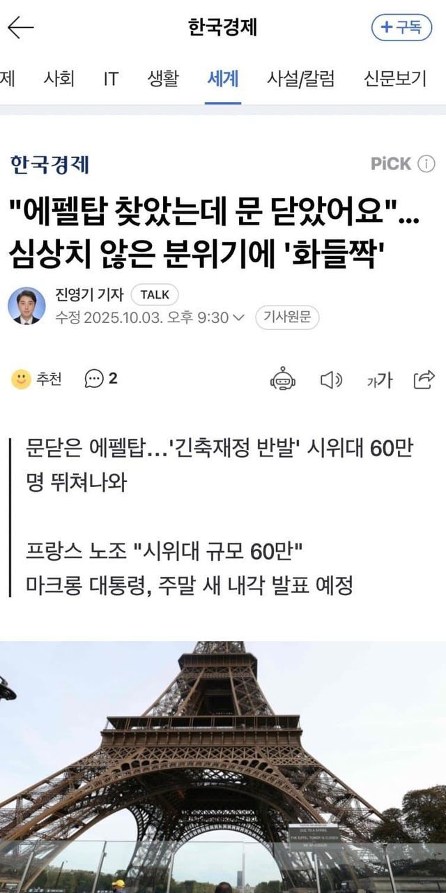 시민들 몰려나와 에펠탑까지 문 닫았다심상치 않은 프랑스 상황