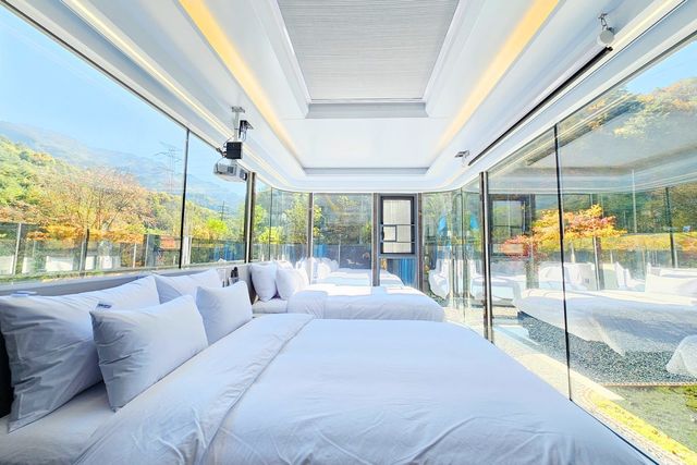 이곳을 방문한 누리꾼들은 "카라반 옆에 돔형으로 된 바비큐장도 있어요", "통창으로 돼 있어서 풍경 제대로 감상 가능", "사진 엄청 잘 나와요", "여름에 가면 앞에 계곡에서 놀아도 좋을 거 같아요", "모든 커튼은 자동으로 개폐돼요", "천장 루프까지 열 수 있어서 좋아요" 등의 후기를 남겼다.