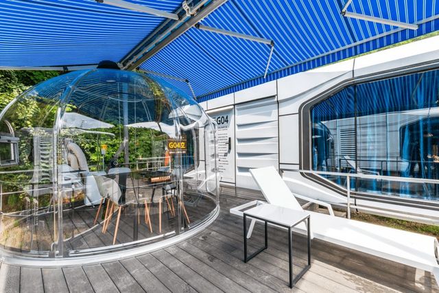 강원도 평창군 봉평면에 자리한 '갤럭시엑스 호텔형 카라반 글램핌&펜션'은 카라반의 전면이 통유리창으로 이뤄져 있다. 카라반의 중간 부분부터 반사되는 필름이 붙어 있어 걱정 없이 휴식을 취할 수 있다. 가격과 관련된 자세한 사항은 갤럭시엑스 공식 홈페이지를 통해 확인할 수 있다.