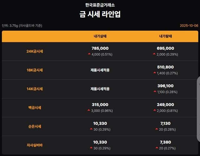 2025년 10월 6일(한국 시각) 오후 국내 금 거래소의 금 가격이 전 거래일 대비 상승세를 보인 것은 국제 금시장의 급등 영향 때문이다.