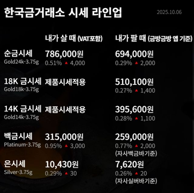 순금(24K) : 매입가 78만 6000원 / 매도가 69만 4000원