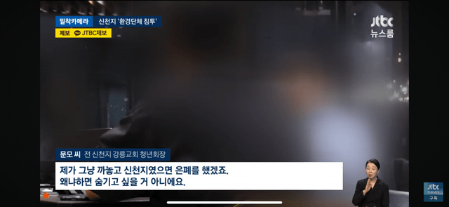 환경단체 잠입해서 포교하던거 걸려서 추궁하는데