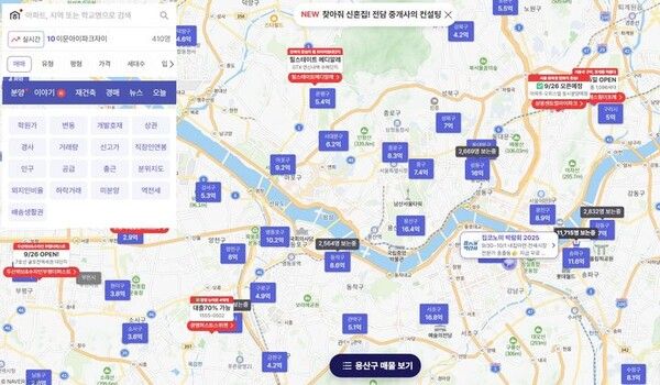 부동산 플랫폼들은 가장 먼저 방대한 데이터를 수집하고 시각화하는 데 집중했다. '호갱노노'와 같은 플랫폼들은 전국 아파트 단지의 실거래가 데이터를 지도 위에 히트맵 형태로 구현한다. 사용자가 지도를 확대하거나 축소하면서 색깔 변화를 통해 어느 지역의 시세가 높고 낮은지, 최근 가격이 어떻게 변했는지 직관적으로 파악할 수 있다. 이러한 데이터는 사용자들에게 특정 지역의 ‘분위기’를 숫자가 아닌 시각적 정보로 전달해 시장 흐름을 한눈에 읽을 수 있게 한다.