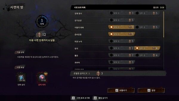 ▲시련의 방에서는 18개의 시련을 부여해 더 난도 높은 게임을 즐길 수 있다