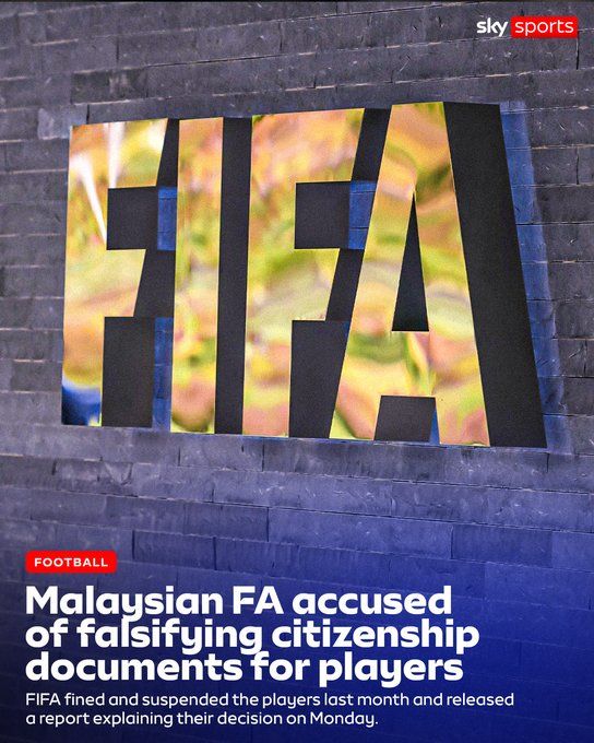 영국 공영방송 'BBC'는 8일(한국시간) "FIFA가 말레이시아가 외국 출신 선수들의 귀화 과정에서 출생증명서를 위조한 사실을 공식 확인했다"며 "이는 명백한 부정행위"라고 보도했다.