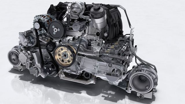 포르쉐 911 GT2 RS 모델에 쓰인 3.8리터 6기통 트윈 터보 박서 엔진. 전기차 확산과 엔진 다운사이징 흐름으로 최근 6기통이나 8기통 엔진을 활용하는 차는 갈수록 줄어드는 양상이다. 포르쉐 제공