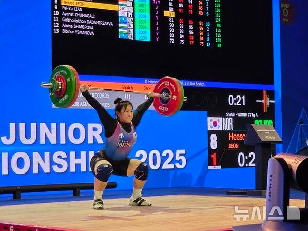 한국 역도 대표팀의 막내인 전희수(18·경북체고)가 2025 세계역도선수권대회에서 16위를 기록했다.