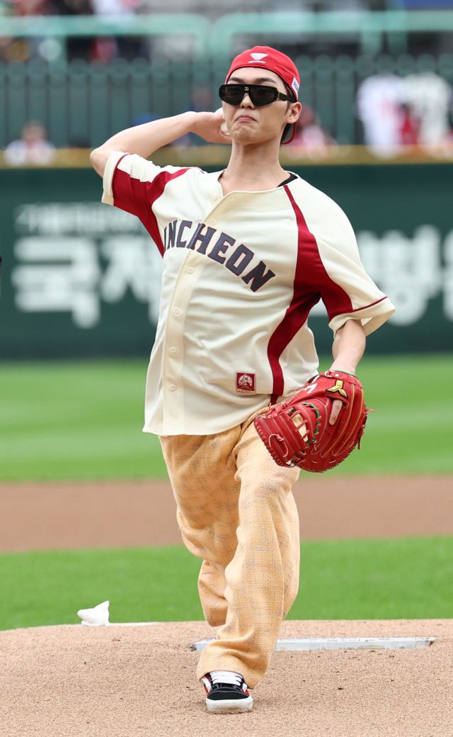 최현욱은 지난 9일 인천 SSG랜더스필드에서 열린 KBO리그 준플레이오프 1차전 SSG 랜더스와 삼성 라이온즈 경기에서 시구자로 마운드에 올랐다.