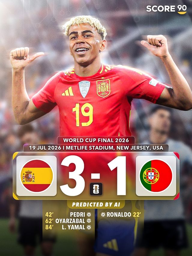 결승 맞대결은 2030년 차기 월드컵을 개최하는 스페인과 포르투갈이다. 스페인은 준결승에서 브라질을 꺾고 올라오며 포르투갈은 아르헨티나를 격파한다는 예측이다.