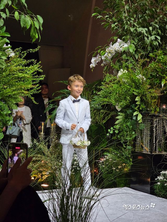 MBC에브리원 '어서와 한국은 처음이지?'에 등장해 귀엽고 사랑스러운 매력을 뽐내 인기를 끈 줄리안의 조카 우리스가 훌쩍 큰 모습으로 신랑신부에게 반지를 건네 훈훈한 분위기를 만들었다.