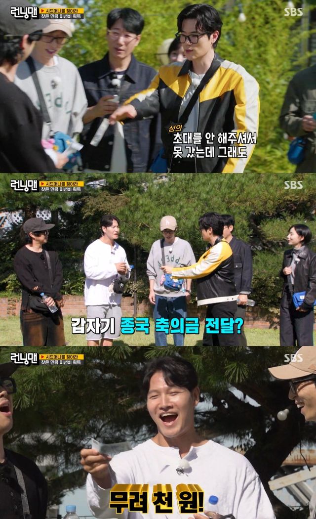 (엑스포츠뉴스 정민경 기자) '런닝맨' 김강우가 김종국에게 깜짝 축의금을 전달했다.