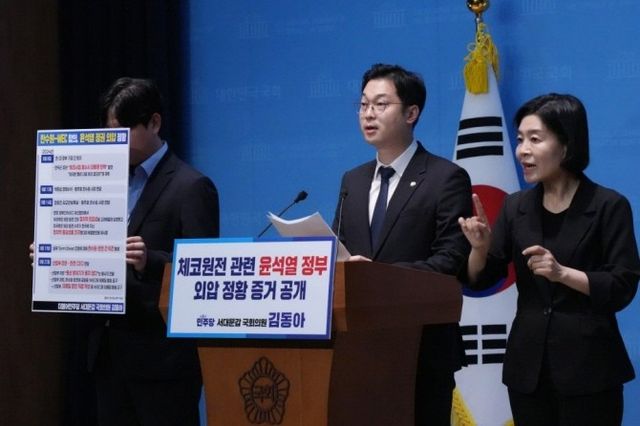 김 의원은 윤 전 대통령의 정치적 치적 쌓기를 위해 당시 대통령실과 정부 고위급 인사들이 졸속 개입했고, 결과적으로 한수원·한전과 웨스팅하우스 사이의 굴욕적 합의가 이뤄졌다고 지적했다.