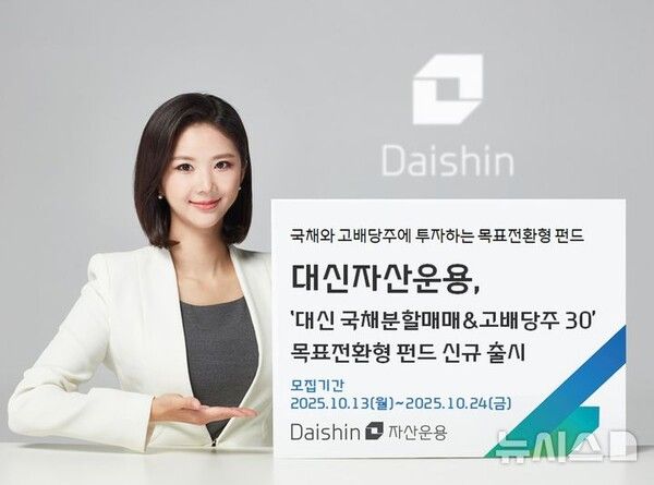 뉴시스 보도에 따르면, 대신자산운용은 오는 24일까지 국채 분산투자 및 분할매매전략, 고배당주 투자로 6%의 목표수익률을 추구하는 '국채분할매매&고배당주30 목표전환형 펀드'를 판매한다고 13일 밝혔다.