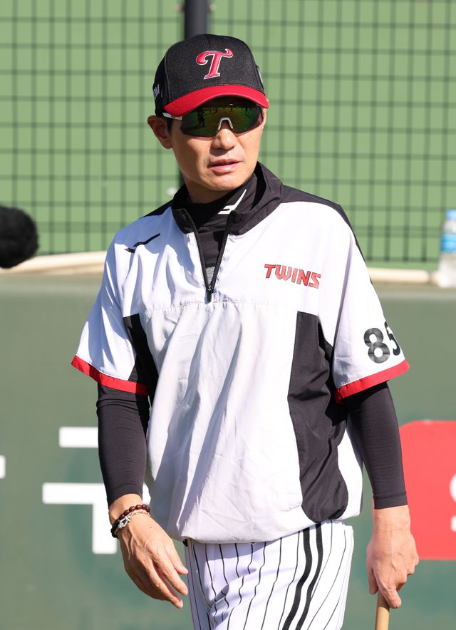 염경엽 감독이 이천 챔피언스파크에서 2025 한국시리즈를 대비한 훈련을 지켜보고 있다. 구단 제공