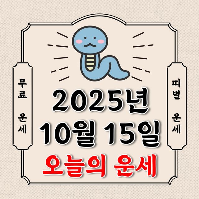 오늘의 운세 2025년 10월 15일 수요일 (음력 8월 24일 / 띠별 운세 / 생년월일 운세)에 대해 알아 보겠습니다.
