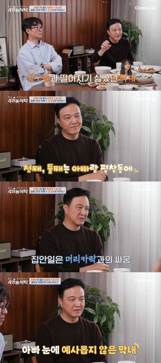 13일 방송된 채널A '절친 토큐멘터리-4인용식탁'에는 배우 정웅인과 송선미, 장항준 감독이 출연했다.