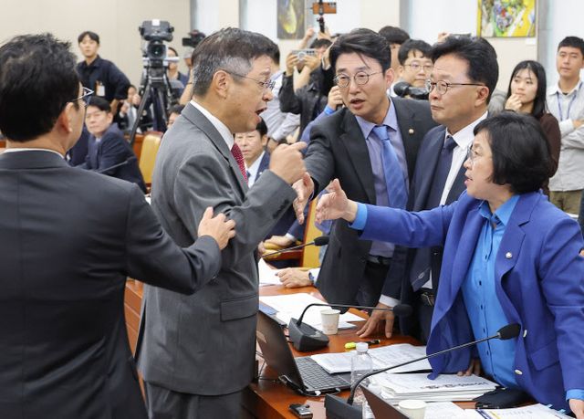 결국 최민희 과방위원장은 오후 국감이 시작된 지 44분 만에 정회했는데, 이때 박 의원은 김 의원을 향해 “한심한 XX”라고 욕설하며 “나가”라고 소리쳤다.