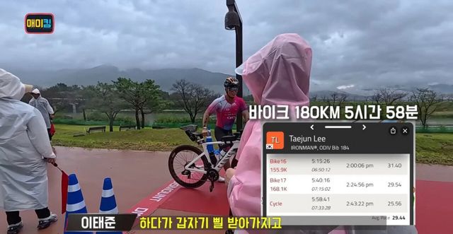 수영 코스까진 매우 무난하게 마쳤는데 악재가 추가되어 당일 도로에 빗물이 고일 정도로 비도 많이 와서