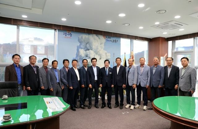 | ▲ 공영민 고흥군수, 이장단 협의회와 소통간담회 가져... - 왼쪽 8번째부터 류병석 고흥군 이장단 협의회장, 공영민 고흥군수 |