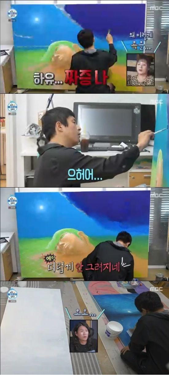 이날 기안84는 그림 작업을 하면서 "짜증 나", "힘들다. 더럽게 안 그려지네"라고 계속 화를 냈다.