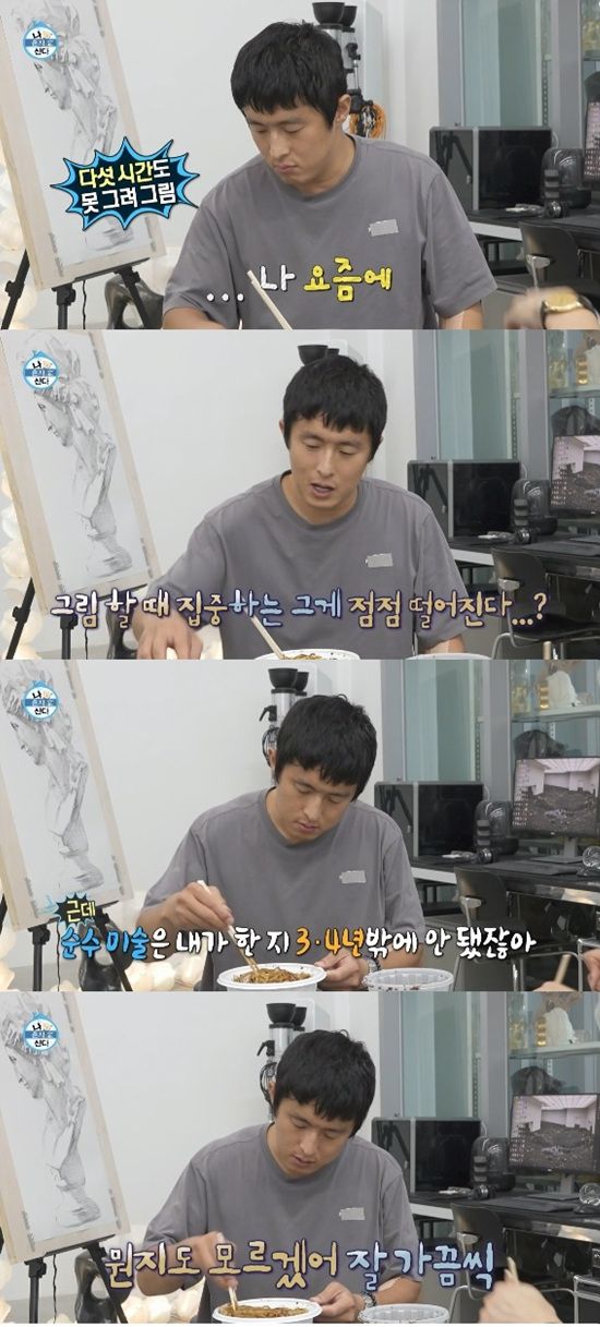 기안84는 "사실 순수미술 한 지 3, 4년밖에 안 됐잖아. 가끔은 뭔지도 모르겠다. 이걸 계속 하는 게 맞는지도 모르겠다. 한다고 했으니까 열심히 하는데"라고 말끝을 흐렸다.