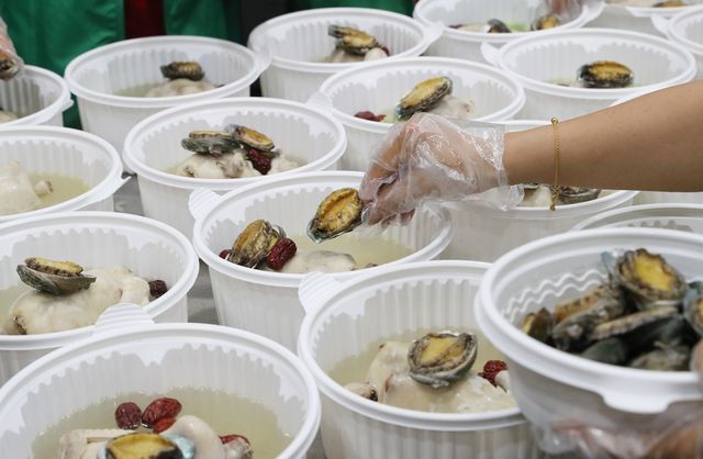 전복 들어간 삼계탕 모습. 기사 이해를 돕기 위한 자료 사진.전복은 단백질이 풍부하면서도 지방 함량이 낮아 건강식으로 각광받고 있으며 특히 타우린과 아르기닌 등 피로 회복에 도움이 되는 성분이 풍부하다. 또한 비타민과 미네랄이 고루 함유돼 면역력 강화와 성장 발육에도 도움을 준다. / 뉴스1