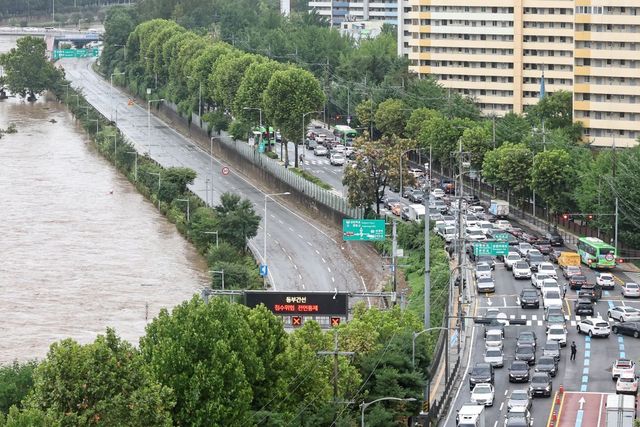중랑천 범람으로 통제되고 있는 동부간선도로 / 뉴스1
