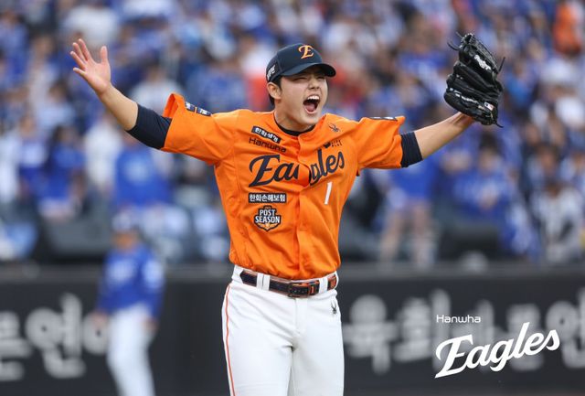 문동주의 압도적인 투구 속에 열광하던 대전 홈팬들은 7회를 삼자범퇴로 막고 마운드를 내려오는 그의 세리머니에 다시 한번 함성을 높였다. 문동주가 두 팔을 하늘로 끌어올리는 동작과 함께 포효했기 때문이다.