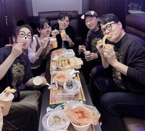 공개된 사진에는 손예진이 배우 이성민, 박희순, 염혜란 등 출연진과 함께 영화 상영 후 리무진 버스에서 떡볶이, 순대, 튀김 등을 나눠 먹으며 유쾌한 시간을 보내는 모습이 담겼다. 배우들 사이에 웃음이 끊이지 않는 모습은 영화를 함께 만든 동료들 간의 끈끈한 팀워크를 고스란히 보여주었다. 특히 손예진은 최근 단발 헤어스타일로 변신해 한층 동안미를 자랑하며 시선을 사로잡았다.