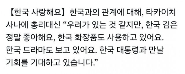 일본 첫 여성총리 다카이치 내각 출범. 한국사랑고백