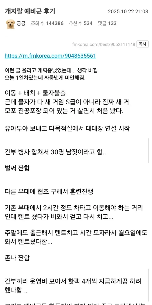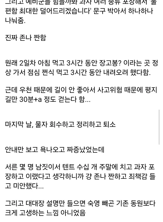 간부 병사 30명이 개고생하면서 예비군들 최대한 불편하지 않게