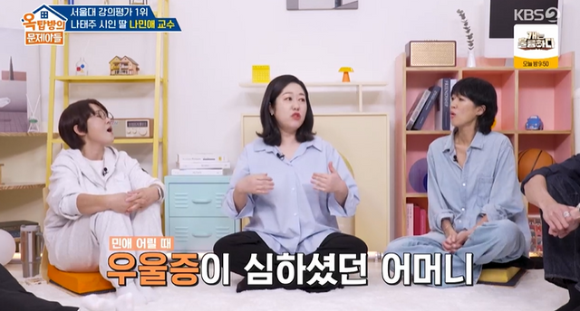 23일 오후 방송한 KBS2 예능 ‘옥탑방의 문제아들’(이하 ‘옥문아’)에는 나태주 시인의 딸이자 19년째 서울대학교에서 글쓰는 법을 가르치고 있는 나민애 교수가 출연했다.