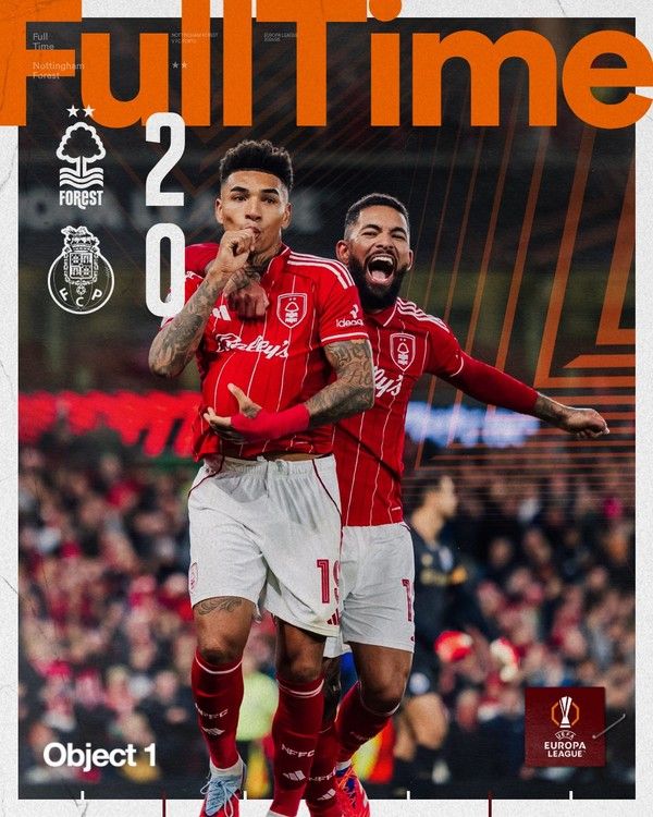 24일(한국시간) 영국 노팅엄의 시티 그라운드에서 2025-2026 유럽축구연맹 유로파리그 리그 페이즈 3차전을 치른 노팅엄이 포르투에 2-0으로 이겼다. 노팅엄은 1승 1무 1패로 리그 17위까지 올라섰다.