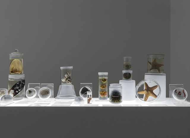 나머지 두 개의 설치 작업 역시 같은 맥락으로 흐른다. 〈이종이식, P56〉은 18세기 의학계에서 생물 표본이 실증적 자료가 아닌 의학사적 영광으로 가공되었던 사례를 비평한다. 〈『자산어보』, 그림 없는 자연사〉는 조선 실학자 정약전이 온전히 활자로 쓴 해양생물학서 〈자산어보〉에 기반해 실제 해양생물을 가공해 표본 형식의 조형물로 만든 작품이다.