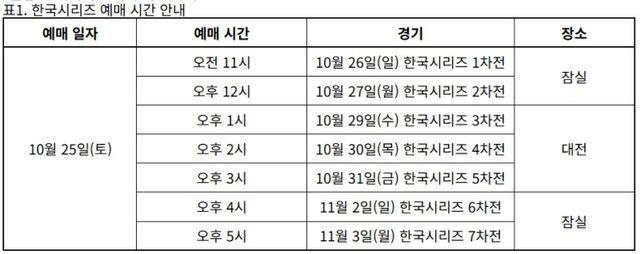 한편 KBO는 25일 오전 11시부터 KS 티켓을 판매한다. 포스트시즌(PS)은 2023 LG-KT 위즈의 KS 1차전을 시작으로 32경기 연속 매진 행진 중이다. 올해 PS 관중 합계는 11경기 23만7330명이다. KBO는 포스트시즌 기간 중 경찰의 공조를 받아 암표 거래와 함께 매크로 단속을 강화하고 있다.