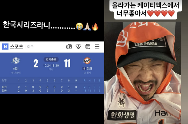 박보영 또한 “나는 행복합니다♥ 최.강.한.화”라고 적었다. 팬 소통 플랫폼에서는 “도파민이 터져. 이런 날이…. 내가 야구 본 이후 처음이야”라고 벅찬 심경을 전했다.