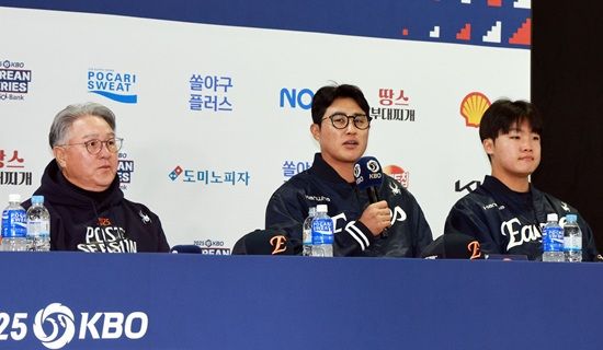 미디어데이에 참석한 정우주는 "올해 1년 차인데도 굉장히 많은 걸 경험했다. 되게 재밌는 시즌이었다. 플레이오프에 이어 한국시리즈 마운드까지 경험할 수 있어서 마음가짐이 남다르다"며 "플레이오프 4차전 선발 등판 때 전날 승리 분위기 최대한 더 이끌어 가고 싶어서 전날 잠도 많이 못 잤다. 그래도 어느 정도 팀 상승세에 기여한 느낌이다. 기회를 주신 감독님과 코치님께 감사드린다. 정말 큰 경험을 했다"라며 고갤 끄덕였다.