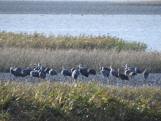 23일 연합뉴스 보도에 따르면 지난 22일 오후 3시쯤 흑두루미 73마리가 전남 순천시에 있는 순천만에 도래했다고 순천시가 밝혔다. 흑두리미 떼는 지난해보다는 하루 늦게 순천만에 왔다. 앞서 지난 20일에는 흑두루미 9마리가 순천만 상공을 선회하기도 했으나 이튿날 일본 이즈미로 간 것으로 파악됐다.