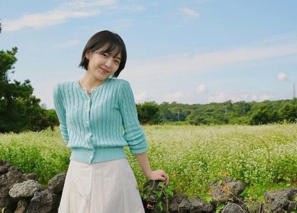1998년 10월 20일생으로 올해 27살인 서신애는 푸른 니트 가디건과 화이트 스커트를 매치한 채 자연을 배경으로 환하게 미소 짓고 있다.